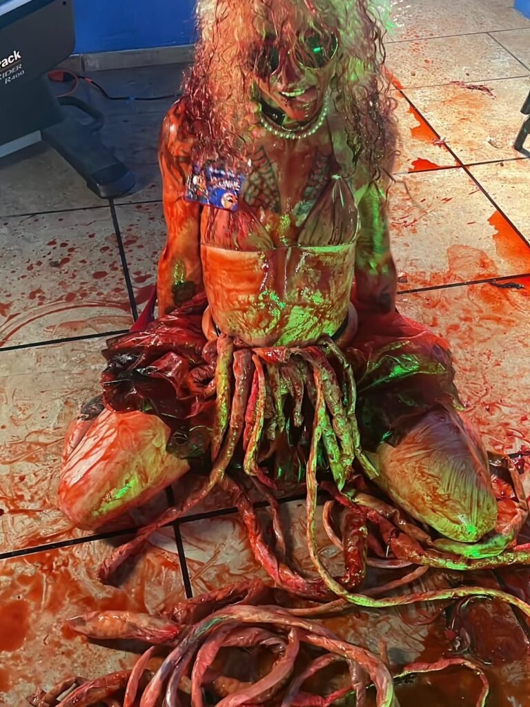 Si l’intrigue reste secrète, la scénariste, réalisatrice et productrice Mercedes the Muse promet un festin hilarant et décadent de gore pratique, de numéros musicaux choquants et de moments d’une folie indescriptible avec l’ambition d’en faire le film le plus « Chicken » jamais réalisé.