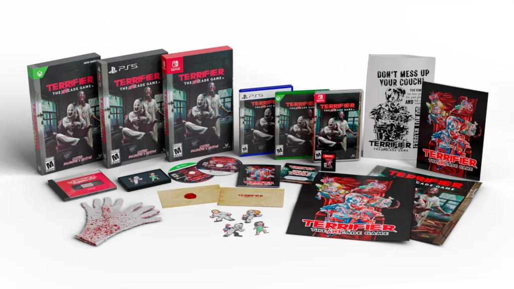Chez les revendeurs partenaires, les collectionneurs pourront mettre la main sur la très convoitée édition limitée “Art Approved”, remplie de bonus exclusifs : pins en émail d’Art et Vicky, “puke bag”, affiche réversible, gants ensanglantés, autocollants, artbook, bande-son “Art’s Mix”, lettre de remerciement et bien plus encore.